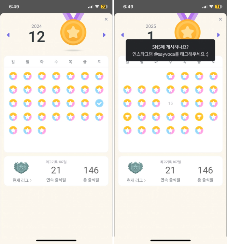 회사를 나가지 않던 9월 중순부터 영어를 다시 배워야겠다는 다짐을 하게 되면서, 너무 어렵지 않게- 부담스럽지 않게- 꾸준하게 진행할 수 있는게 뭘까 생각하던 중 주변에서 추천을 많이해줬던 스픽과 말해보카를 시도해보기로 했다. 둘다 무료 체험판이 있어서 한달간 진행해봤는데, 결과적으로는 말해보카만 진행하고 있다. 스픽은 조금 더 본격적이고 매일 들여야하는 시간이 말해보카보다 압도적으로 많았기 때문에 왠지 부담스러워져서 지속하기엔 무리가 있다 판단되어 무료 체험 후 해지했다. 지금은 말해보카, 듀오링고 를 하고 있는데 각자의 레벨이나 생활습관, 학습 성향 등에 따라 장단점이 있기 마련이라 무조건적인 추천은 못할 것 같다. 다만, 나처럼 오랫동안 영어를 손에서 놓은 사람이나, 매일 영어 공부에 들일 수 있는 시간이 부족해 큰 부담을 느끼는 사람이라면 간단한 어휘를 익히는데 도움이 될 것이라 생각한다. 4-5개월 간 어휘공부, 단어 공부를 했으니 조금 더 해보자 싶은 생각이 있어서 3월부터는 오프라인 영어 스터디 모임에도 나간다. 영어가 얼마나 늘지는 모르겠지만 그래도 오랫동안 생각만 해오던 일을 시작해서 지금까지 지속하고 있다는 것에 성취감이 있기 때문에 계속 해볼 생각이다.